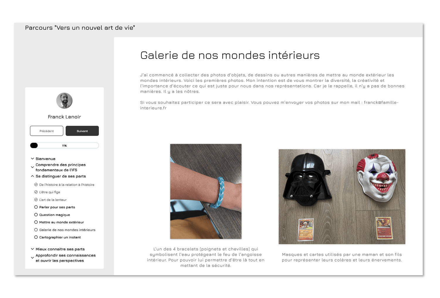 Le parcours que j'ai créé va vous aider à voir, écouter, ressentir et distinguer les différents aspects de votre monde intérieur. Vous allez pouvoir faire la part des choses en vous pour transformer ce qu'il s'y joue depuis souvent bien longtemps.