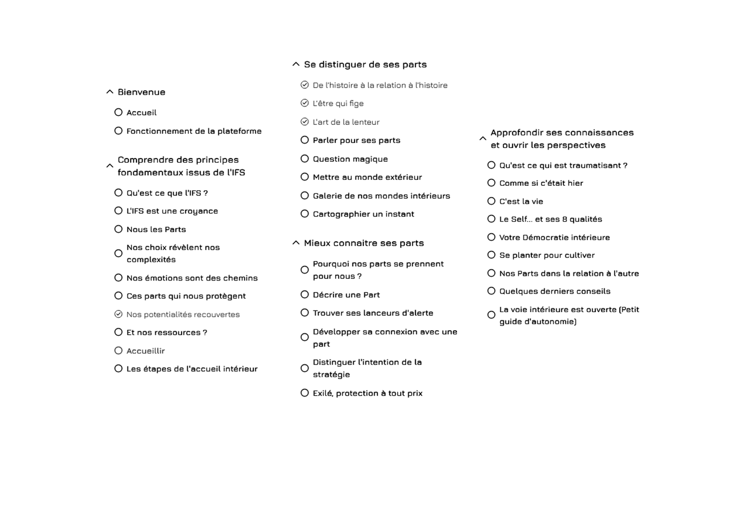 Dans ma pratique thérapeutique, l'IFS, on appelle ça des Parts de nous. Et je veux vous apprendre à les écouter pour transformer leur impact sur vous.